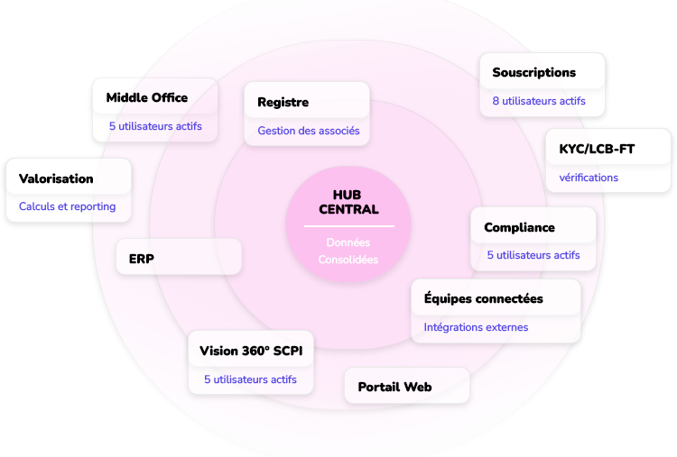 Elle s’intègre nativement aux portails associés, à l’ERP de gestion des souscriptions et aux outils KYC/LCB-FT, pour une gestion sans erreurs et une traçabilité complète.
